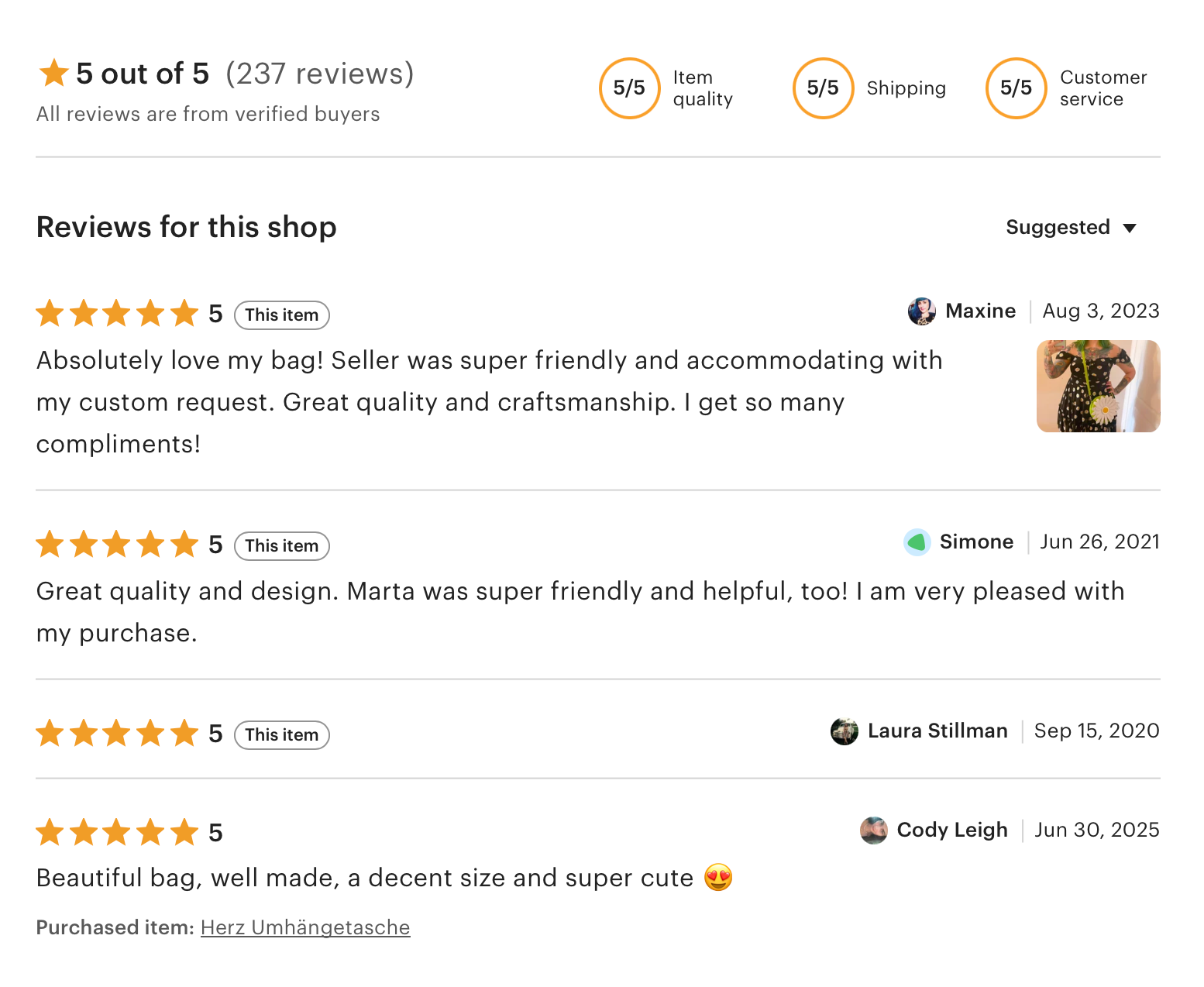 One of our most elaborate designs: The Daisy Bag. Made from more than 100 hand-cut white faux leather flowers with a yellow center and mirrored details.